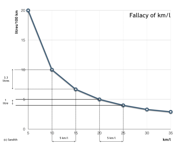 Graph highlighting the fallacy of km/l measurement
