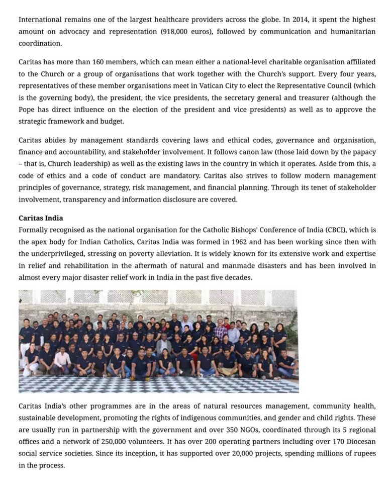 Caritas India is nothing but Catholic Bishops Council of India. Caritas itself is virtually a subsidiary of the Vatican.