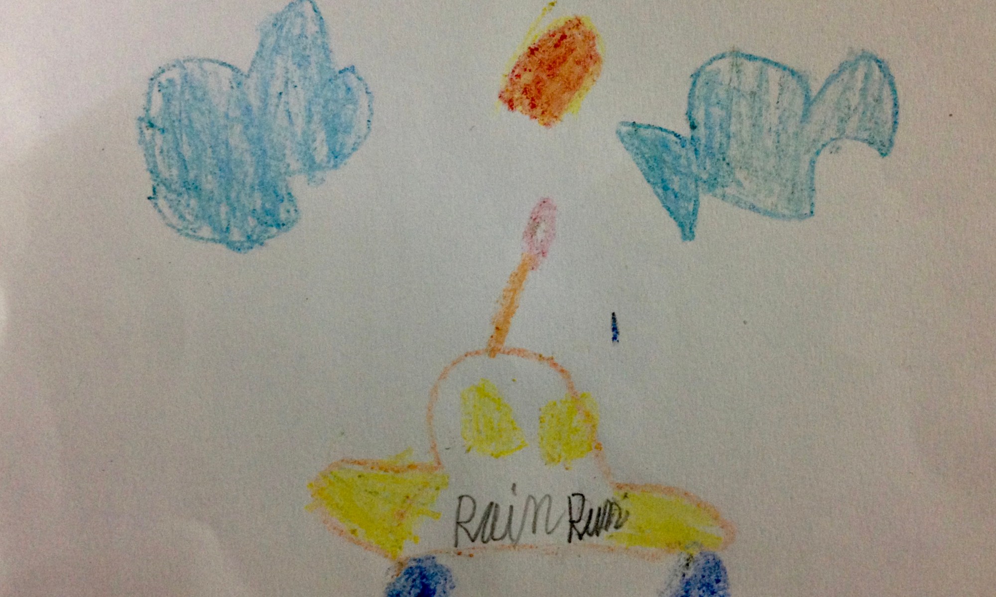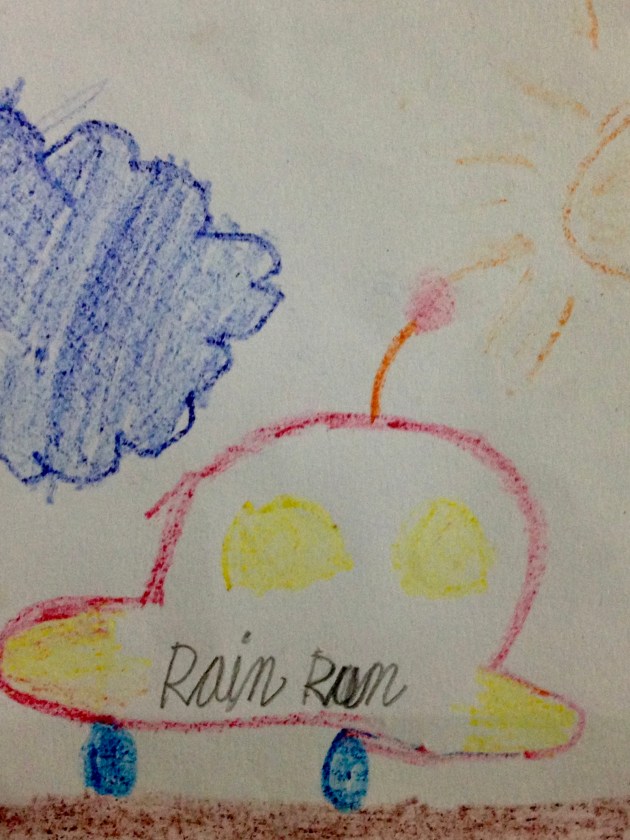 Today my son, Abhimanyu, came up with a “robotic car” (in his words) named RAIN RUN. What is interesting is that this car run on rain. Having seen ADITYA (India’s first solar ferry boat) that runs on sun during a visit on a rainy day, as well as learning about Tesla, he came up with this idea.