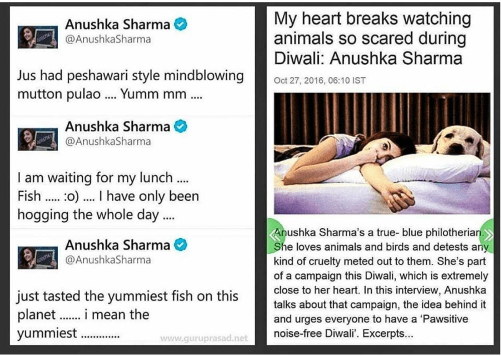 - Anushka Sharma (Animal welfare was her point)