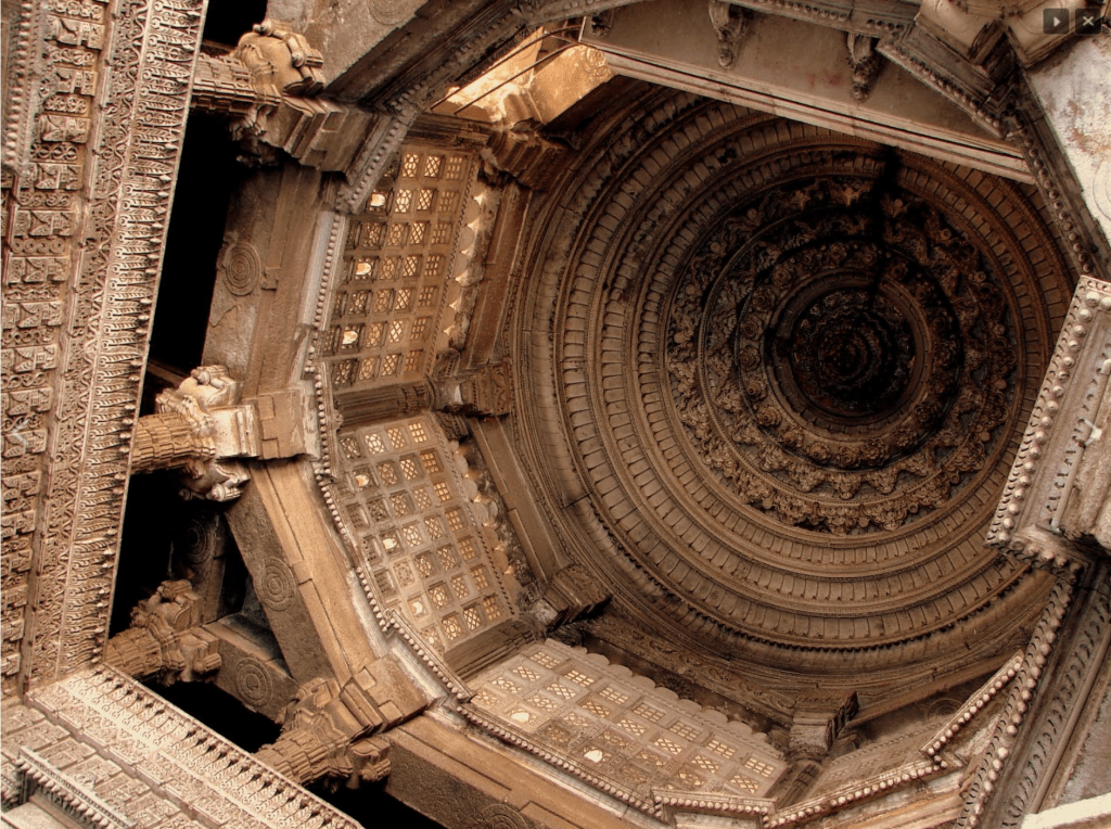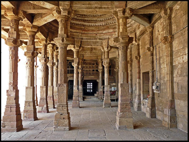 The Jama Masjid was built over the Bhadrakali Temple by Ahmed Shah I in 1424 CE. Intricate carvings of typical Hindu temples are all around for everyone to see. Carvings of flowers, creepers, mandalas, elephants, coiled serpents, apsaras, bells are found on the 100 odd surviving pillars.