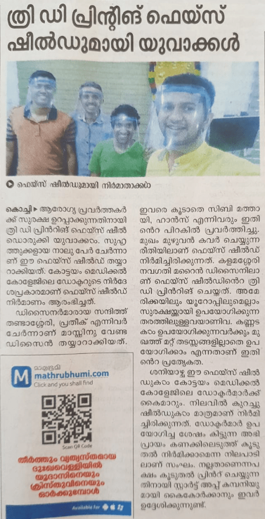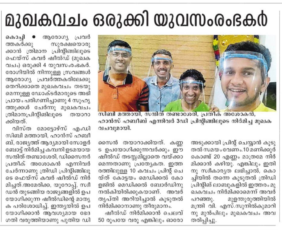 As a first step, the four of us-Sibi Mathai, MD of Vista (Volvo Truck, Bus Dealer), Hans Habeeb, COO Suracsh Filters, Pratheek, design & styling head at Navgathi Marine and me joined hands to offer something that doctors and frontline people would need.