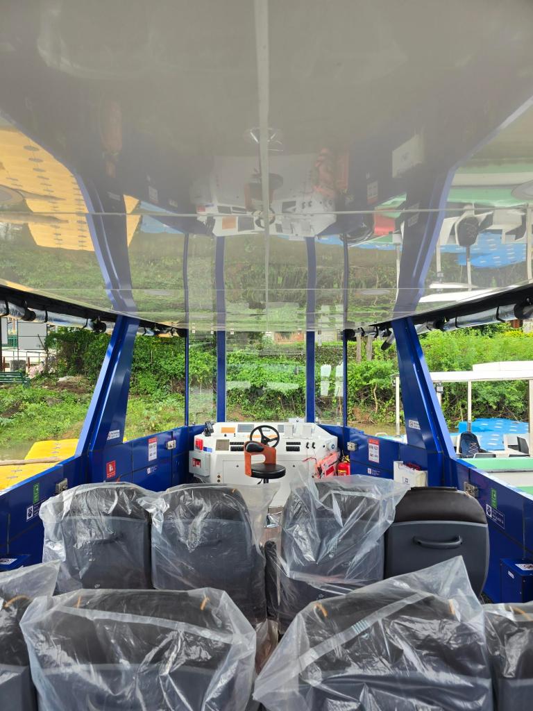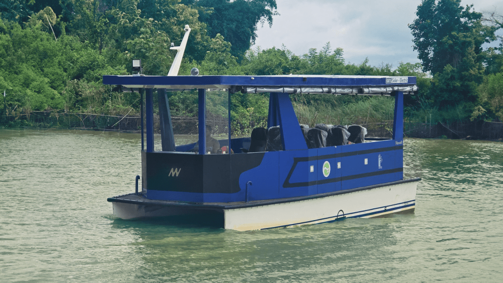 Our next solar boat is on its way to the picturesque forests of Madhya Pradesh. This is the second solar boat designed to ferry tourists eager to enjoy wildlife watching. Solar boats are ideal for operating in eco-sensitive areas. They are extremely quiet, ensuring minimal disturbance to wild animals and birds. Additionally, the lack of vibrations and fuel odors enhances the passenger experience.