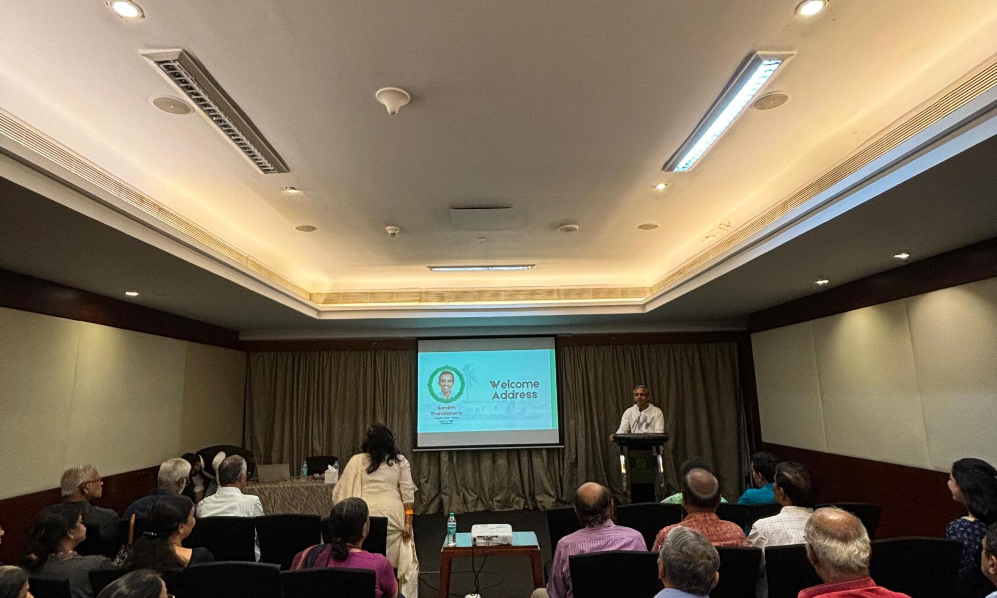 The event kicked off with a welcome address by me, the chapter chair. During my address, I announced that the next foundation day celebration will be held on July 31 at 4 PM on the Indra solar cruise boat, the largest solar boat in the country.