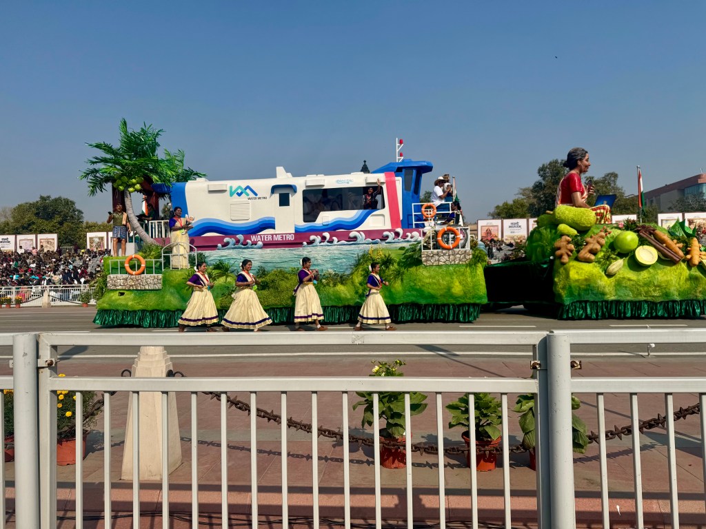 What followed was a powerful spectacle — the armed forces showcasing their latest systems, impeccably coordinated march-pasts, military bands, tableaux from ministries and state governments, the unmistakable roar of special forces motorcycles, and aerial formations slicing through the sky. The Kerala pavilion was special for us with Kochi Metro boat as the centerpiece and focus on electric boats. One vertical fighter manoeuvre drew an audible gasp from the crowd — a moment of pure awe.