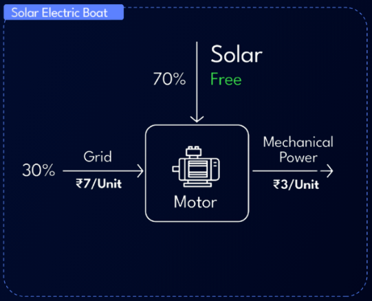 Economically, the model is compelling. A comparable diesel ferry costs about ₹2 crore, while the solar-electric version costs around ₹3 crore. With annual fuel savings of about 35,000 litres (₹35 lakh), the additional CAPEX is recovered in under three years.