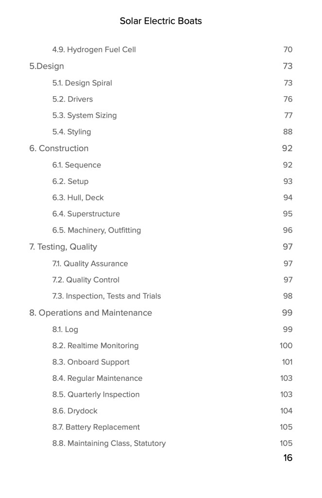 After clarifying what solar-electric boats are and introducing their potential market, the book answers the question, “Why do we need solar boats?” Next, the philosophy of solar boats and the difference between fossil fuel boats are described, and all the available technology choices are listed. The stage is set to start on the design of the boat, and the processes of design and construction are outlined. The tests and trials solar-electric boats undergo are briefly explained, followed by descriptions of the operations and maintenance of a solar boat. Finally, the solar ferry ADITYA is featured, and the last chapter lists the steps we need to take for the faster adoption of solar-electric boats.